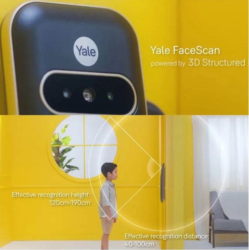 Khoá cửa khuôn mặt Yale Luna Elite+ sử dụng công nghệ 3D Structured Light, quét cấu trúc khuôn mặt theo chiều sâu, giúp: