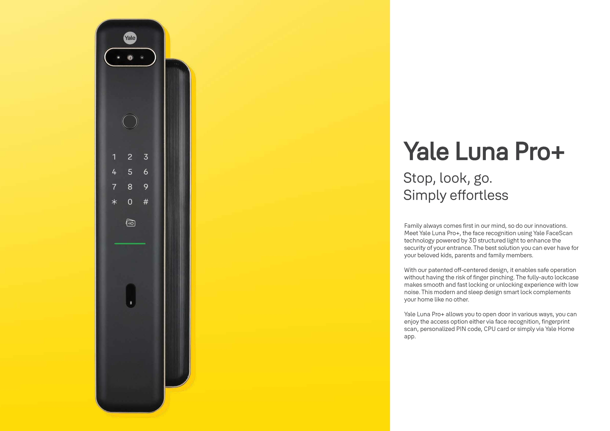 Khoá cửa khuôn mặt Yale Luna Pro+ – Đỉnh cao công nghệ Face ID cho ngôi nhà hiện đại