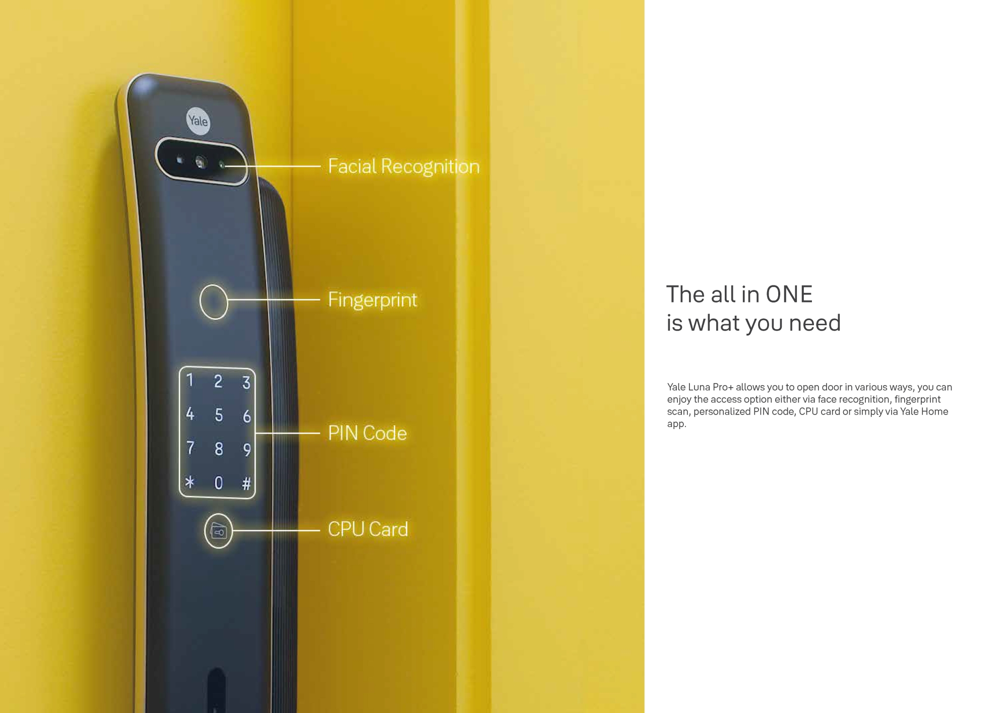 Ngoài nhận diện khuôn mặt, Khoá cửa khuôn mặt Yale Luna Pro+ còn hỗ trợ nhiều phương thức mở khóa linh hoạt: