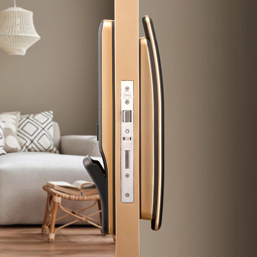 Khoá cửa khuôn mặt Yale Luna Pro+ sở hữu thiết kế dạng thanh dọc nguyên khối, bề mặt hoàn thiện tinh tế, phù hợp với nhiều loại cửa gỗ và cửa thép cao cấp. Tông màu vàng champagne mang lại cảm giác sang trọng, đẳng cấp, dễ dàng hòa hợp với kiến trúc hiện đại.